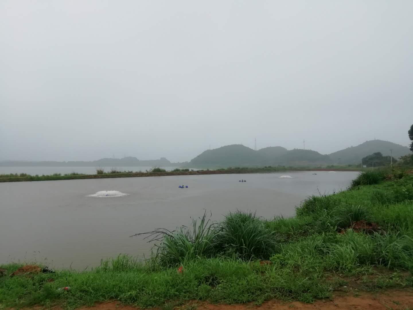 网湖周边鱼池出现大量增氧机和投饵机