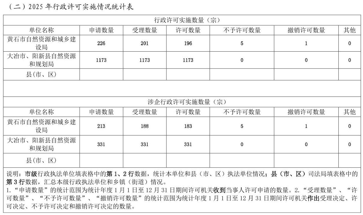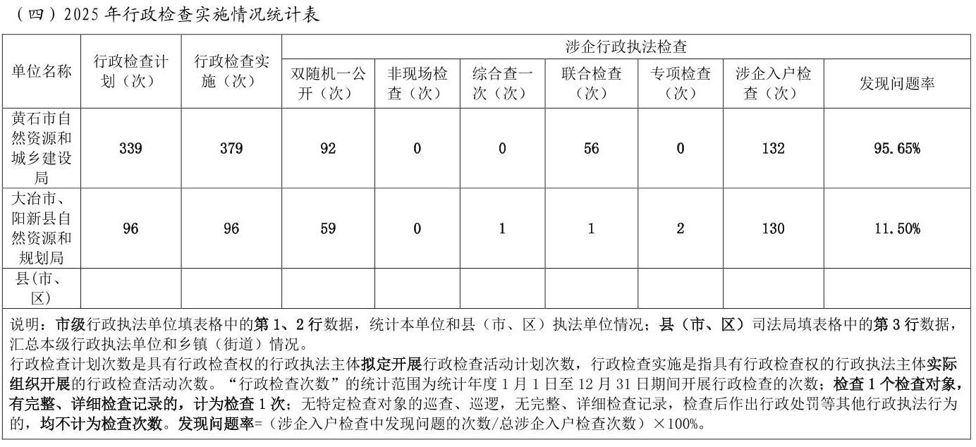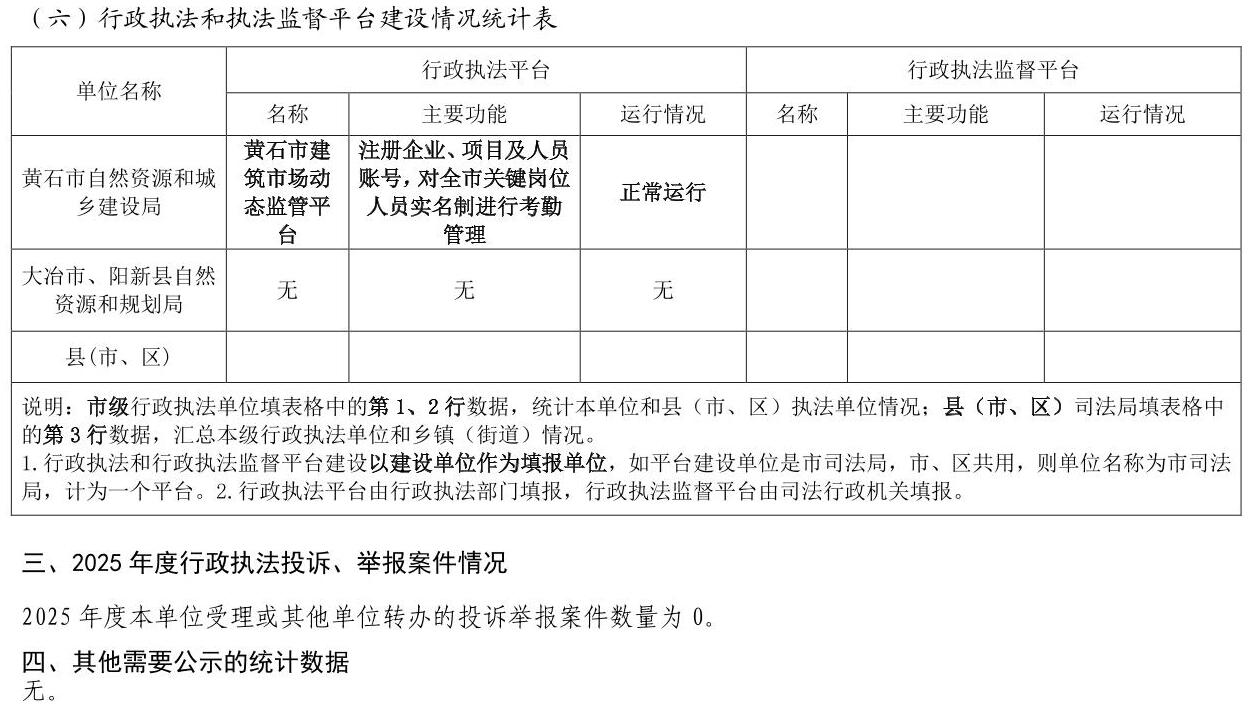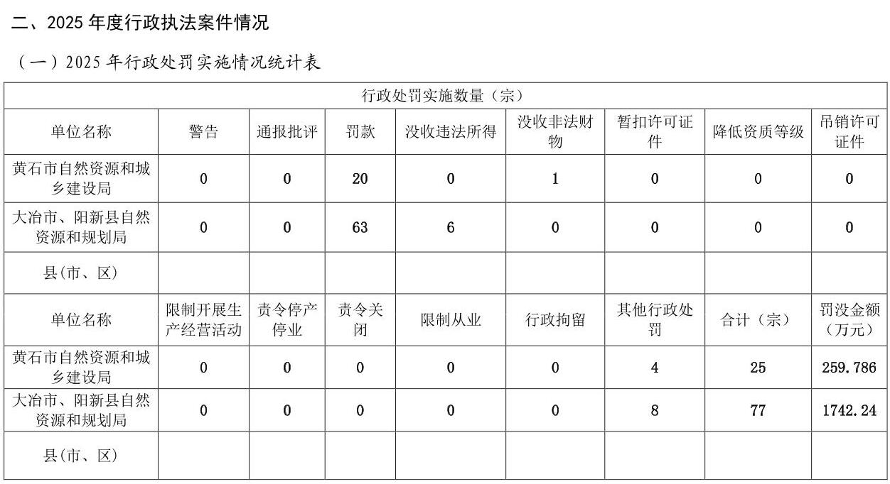 黄石市自然资源和城乡建设局2025年度行政执法统计年报