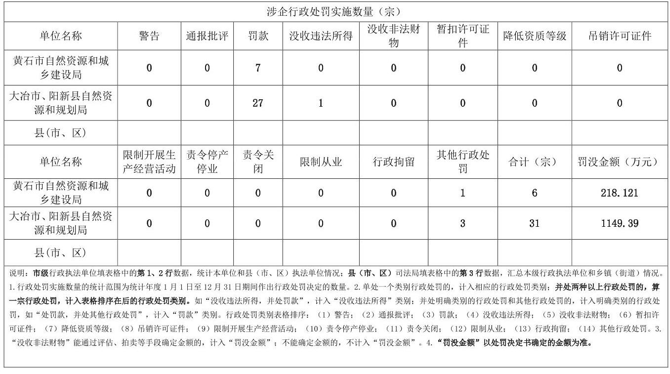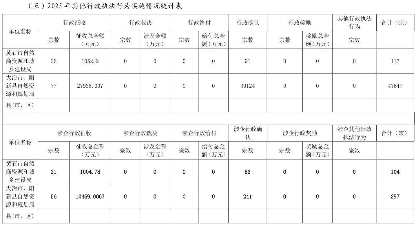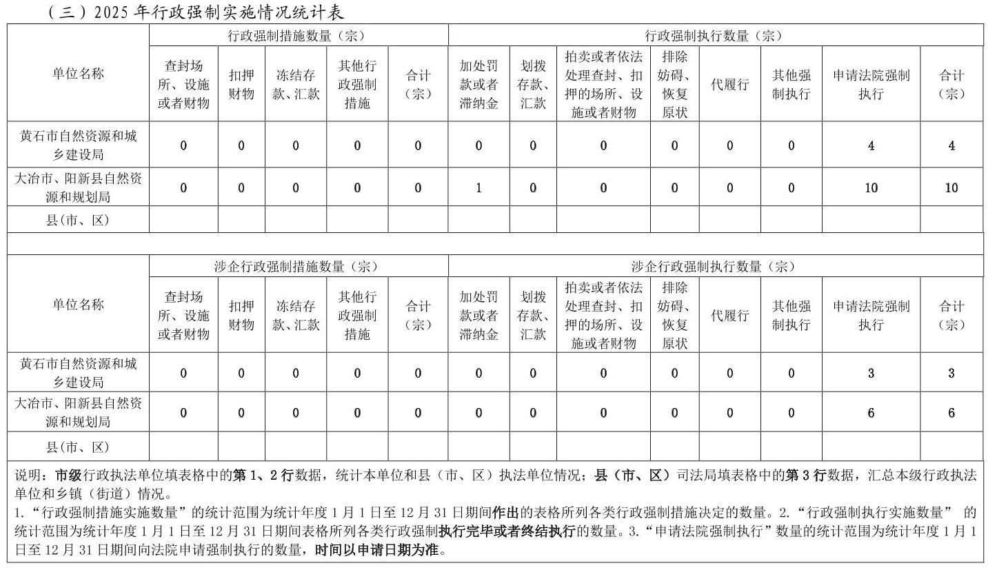 黄石市自然资源和城乡建设局2025年度行政执法统计年报