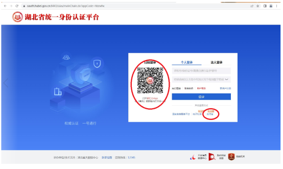 进入“湖北政务服务网”,手机APP鄂汇办或者支付宝扫描登录
