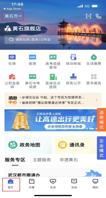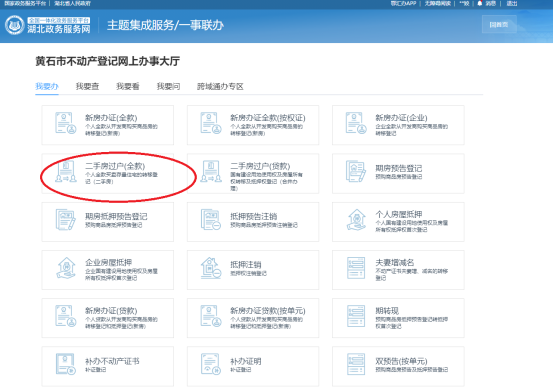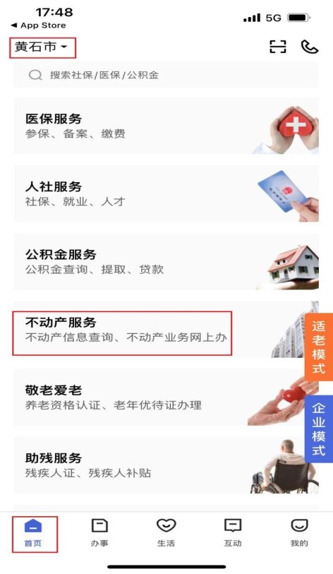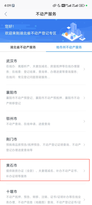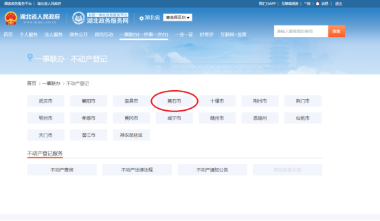 点击“地市州不动产服务”,选择“黄石市”模块,点击进入