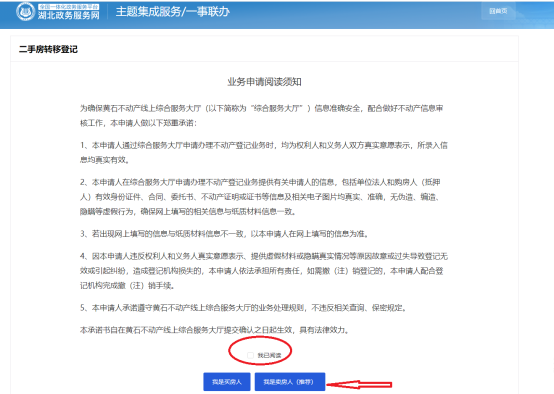 浏览业务申请阅读须知,选择“我已阅读”—我是卖方人