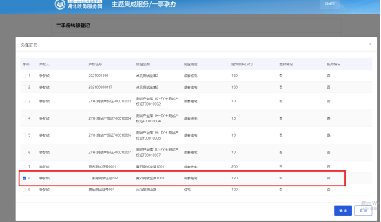 确认卖方信息:确认登记列表信息,点内容任意地方。