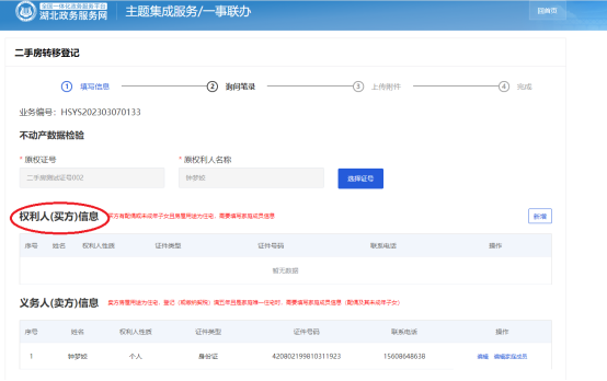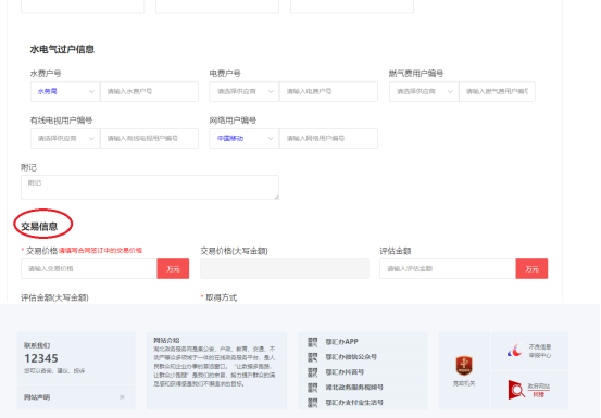 依次填写权利人(买方)信息—不动产权信息—水电气过户信息—交易信息,进入下一步