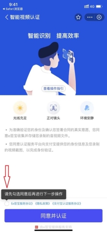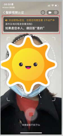 点击手机屏幕下方【提交签署】按钮,进入【人脸视频认证】环节,按照手机提示,录制视频提交。