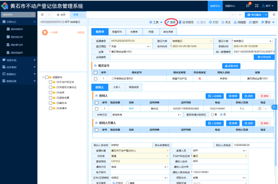 受理人员签收案件,按照《不动产登记操作规范(试行)》对提交的附件依法查验申请材料,录入相关信息,推送税务。