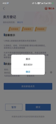 所有信息填写确认完成后点击“提交”按钮,提交成功