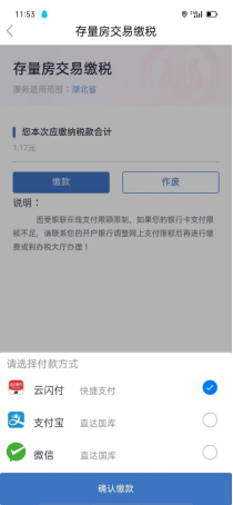 纳税人选择缴款方式,包括云闪付、支付宝、微信等方式。