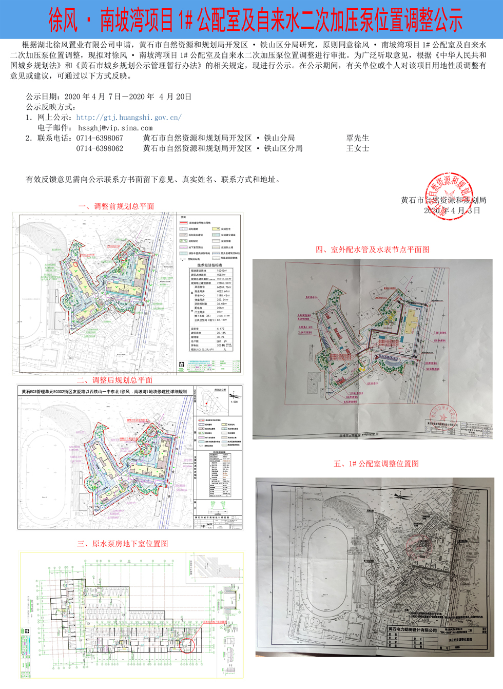 徐风·南坡湾项目1#公配室及自来水二次加压泵位置调整公示