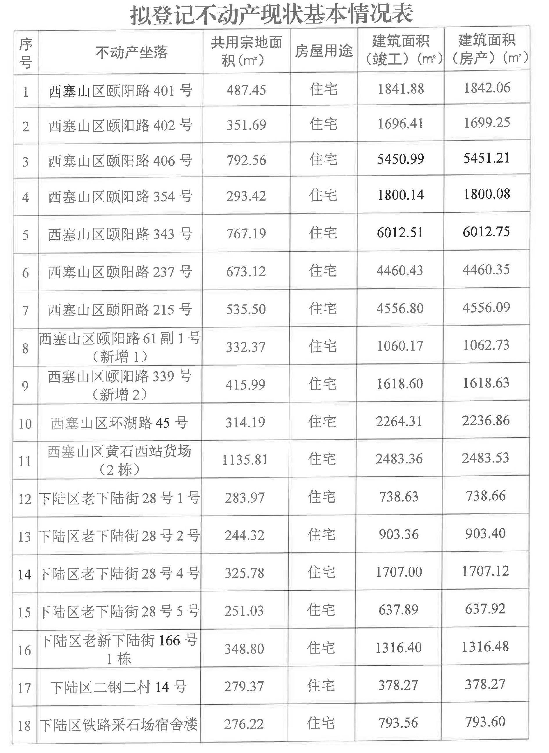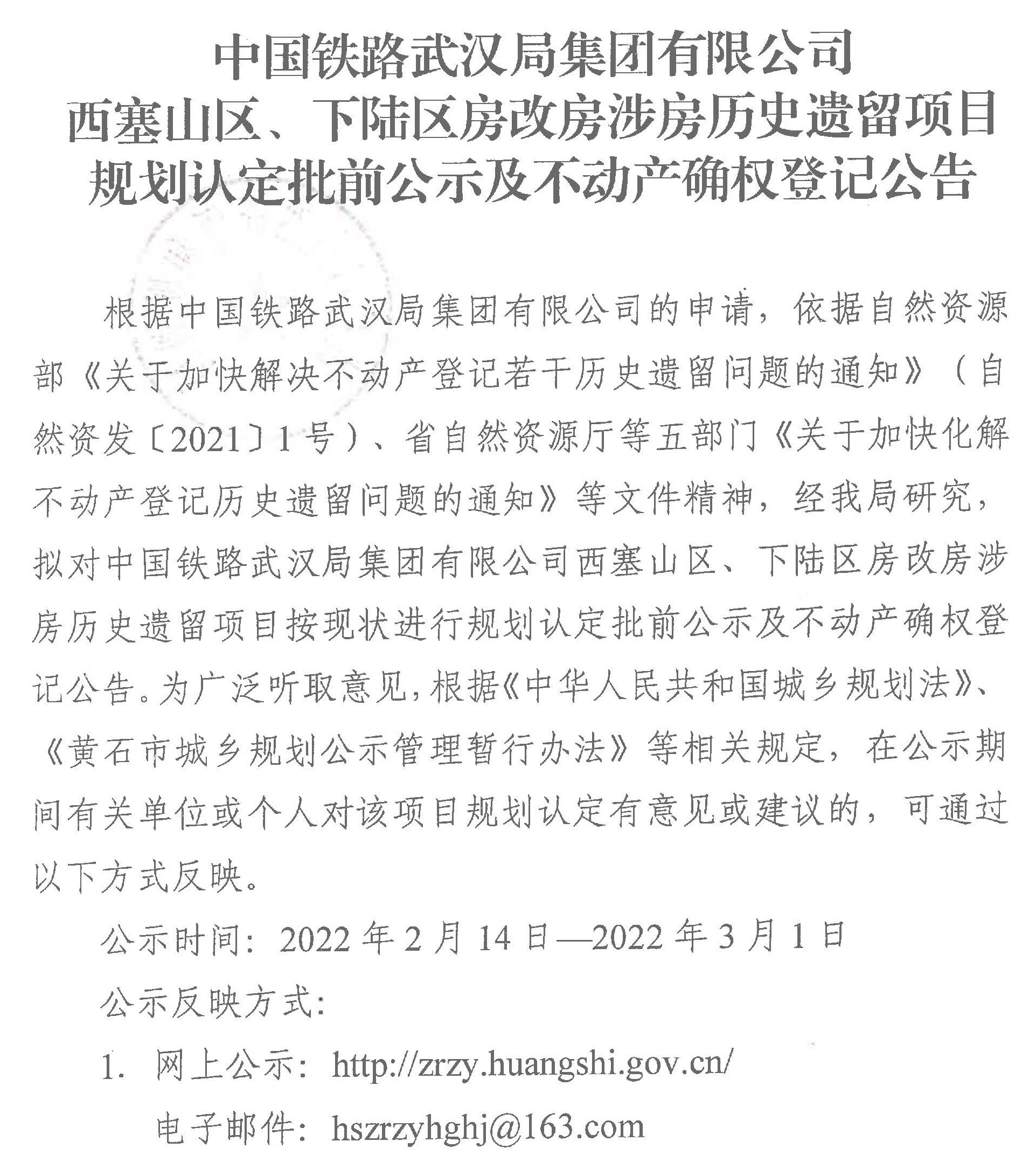 中国铁路武汉局集团有限公司 西塞山区、下陆区房改房涉房历史遗留项目 规划认定批前公示及不动产确权登记公告