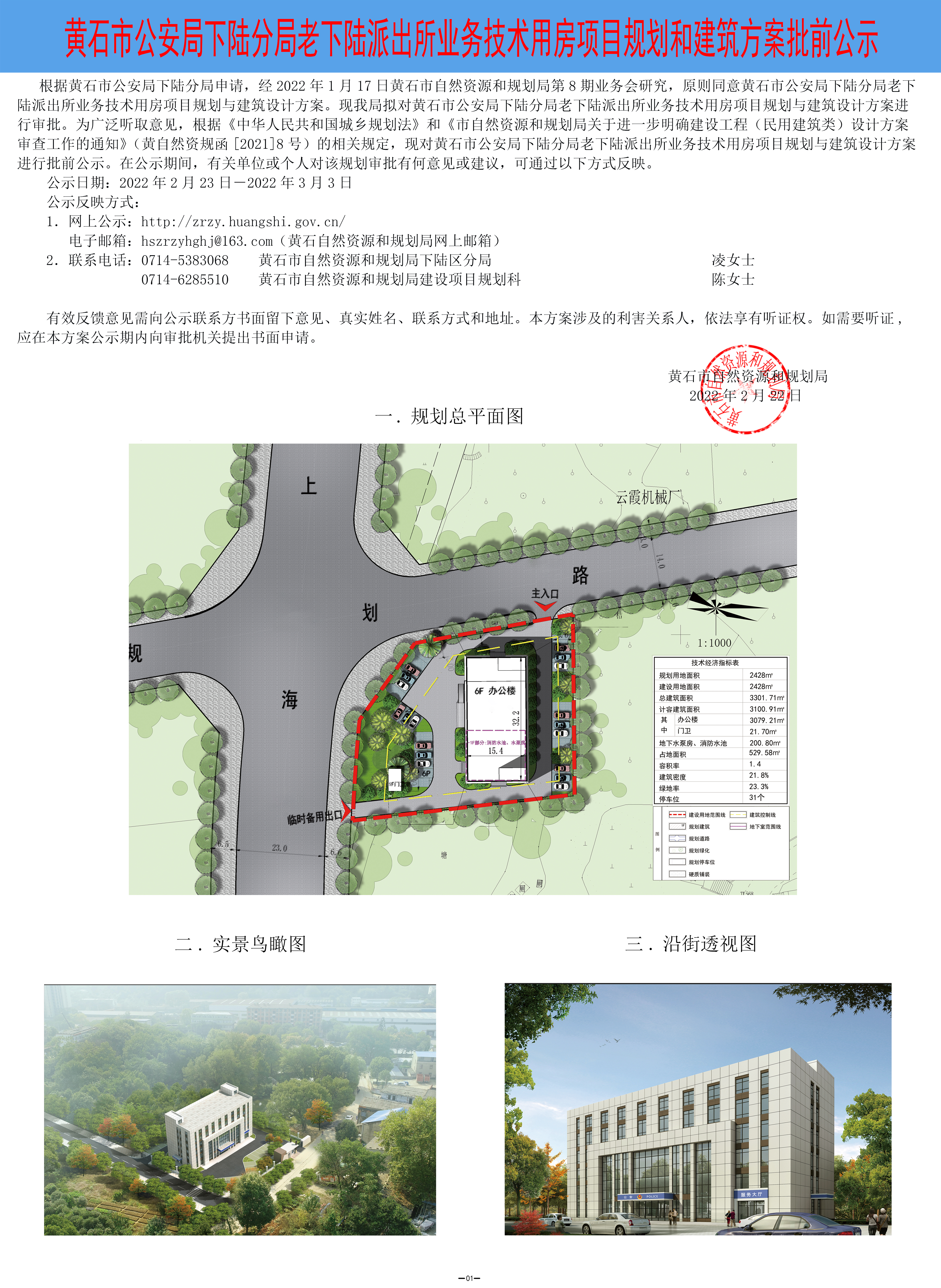 02黄石市公安局下陆分局老下陆派出所业务技术用房项目规划和建筑方案批前公示jpg