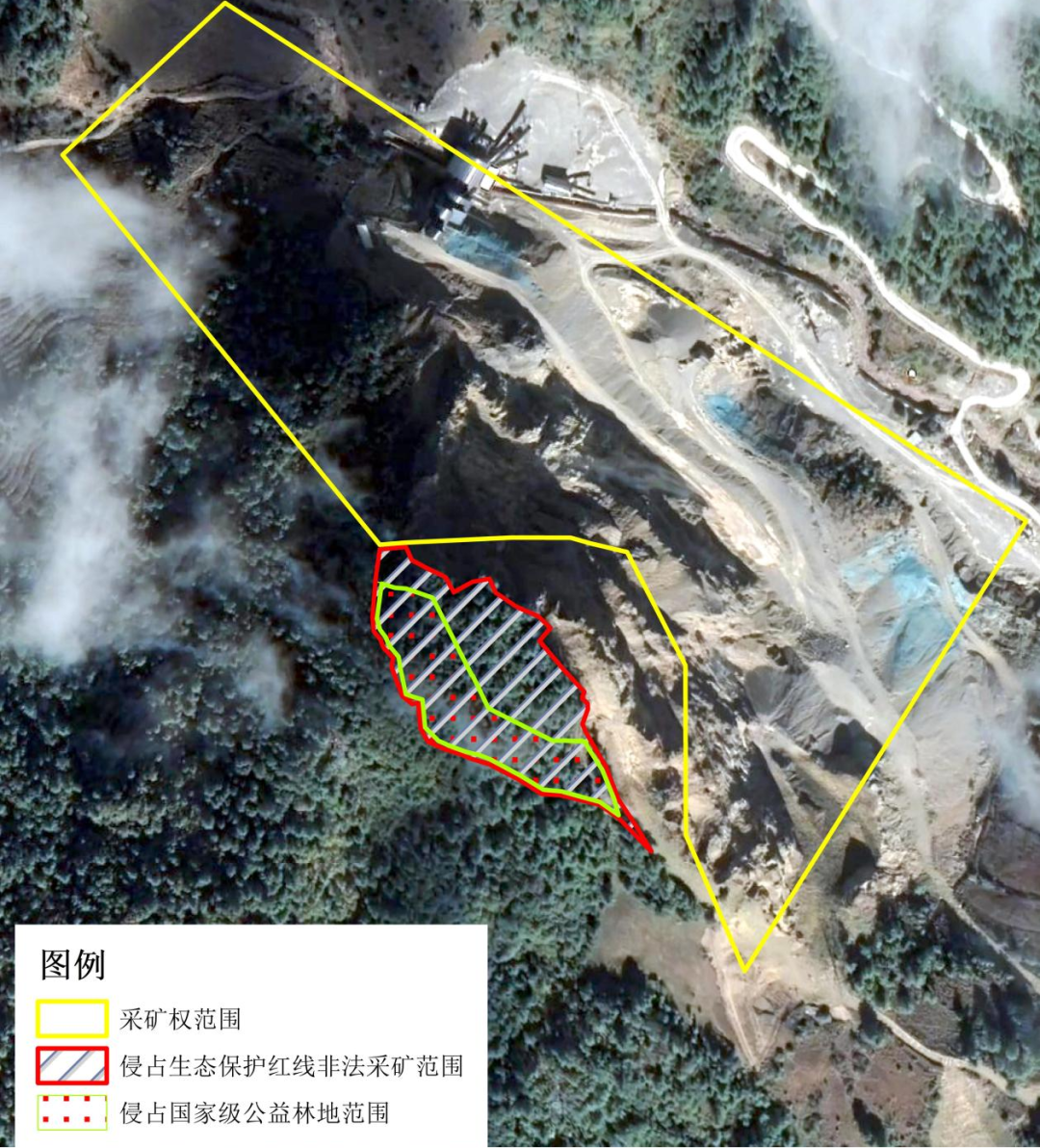 2024年8月,兰坪恒磊采石有限公司以“排危除险”为名,在云南省怒江州兰坪县翠屏街道高坪村非法开采砂石矿约20万吨并对外销售,侵占生态保护红线13.4亩(其中国家级公益林地7.32亩)。