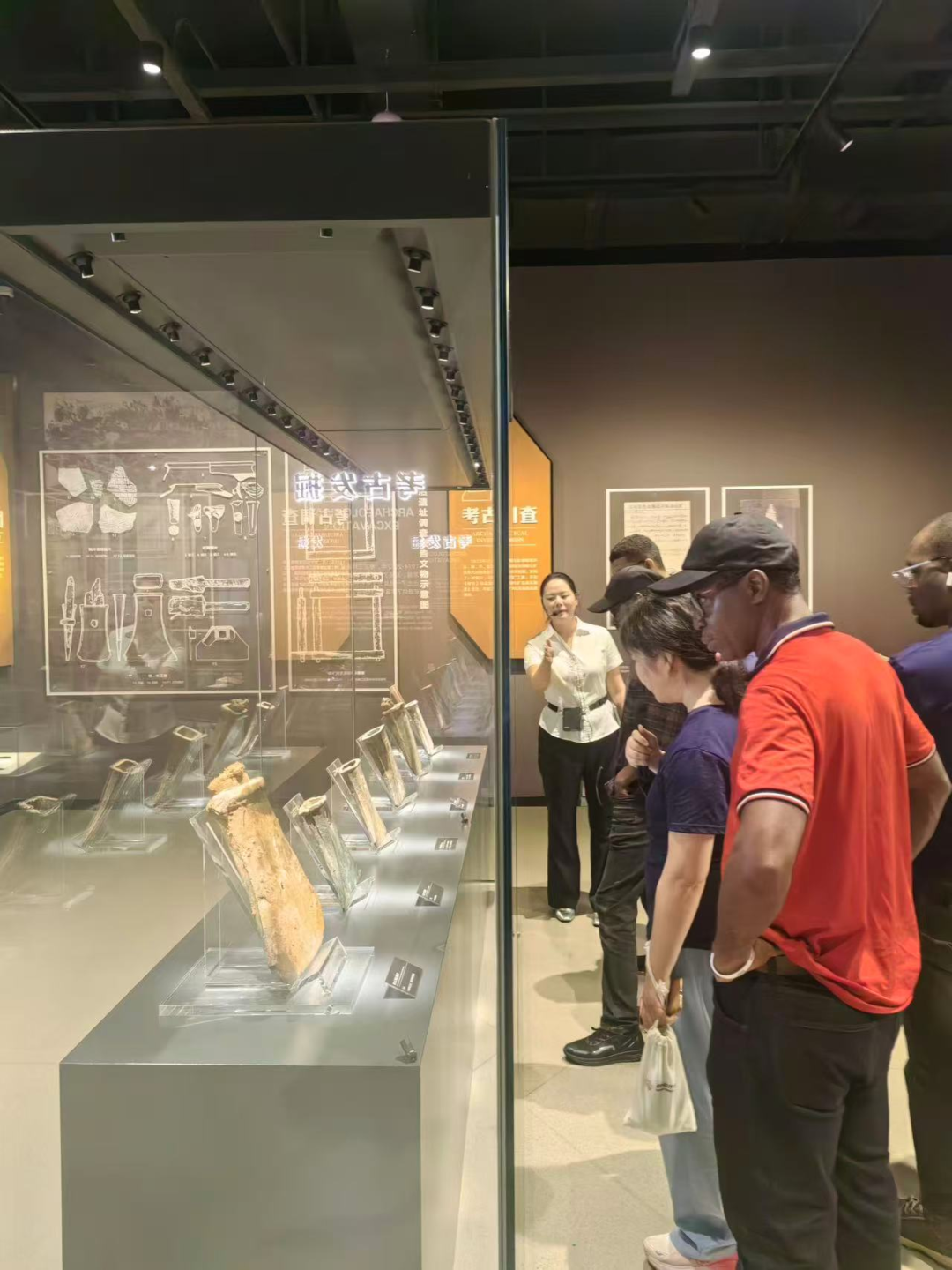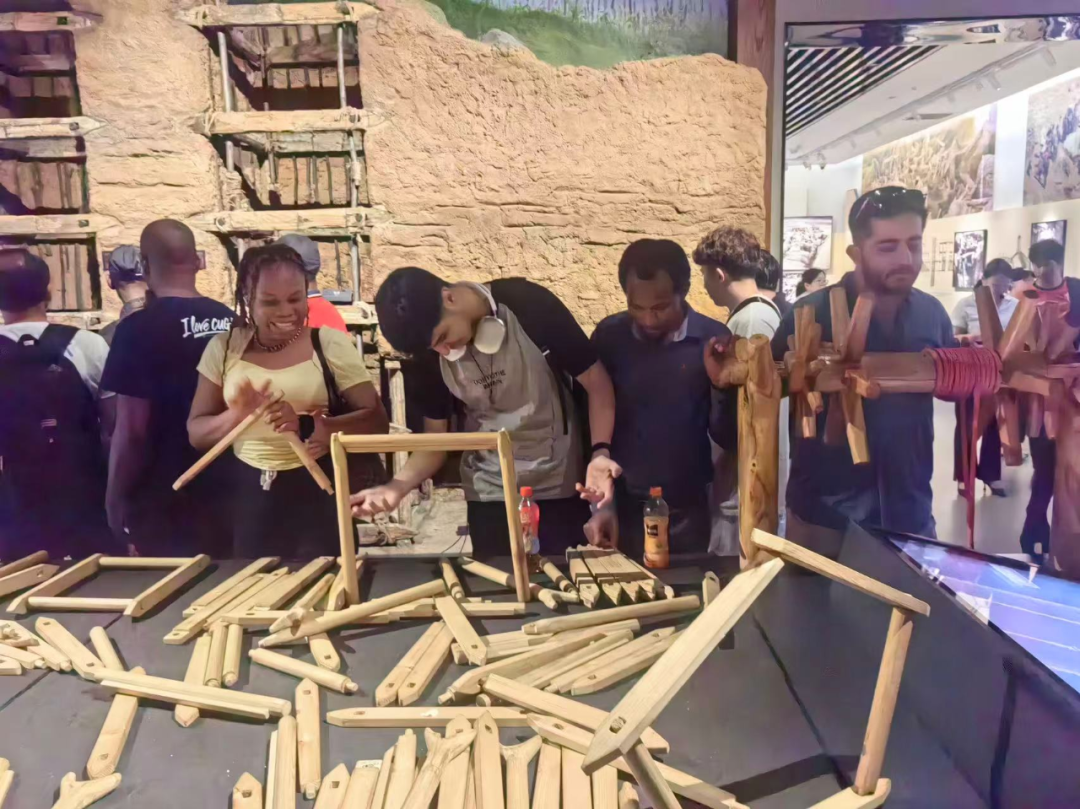 来自巴基斯坦、墨西哥等各国的学子踏入黄石国家矿山公园,站在“亚洲第一天坑”之巅,俯瞰“石头上种树”的生态奇迹,见证资源型城市从“工业锈带”到“生态秀带”的华丽转身。来到铜绿山古铜矿遗址博物馆,穿越3000年时光隧道,触摸商周时期的采矿井巷、冶炼炉渣,见证“世界第九大奇迹”的辉煌,感受华夏青铜文明的源头活水。随后,学子们来到矿山企业体验“5G+智慧矿山”的科技魅力,现代化智能采矿设备与绿色矿山建设成果交相辉映,解码传统矿业向数字化、绿色化转型的黄石实践。