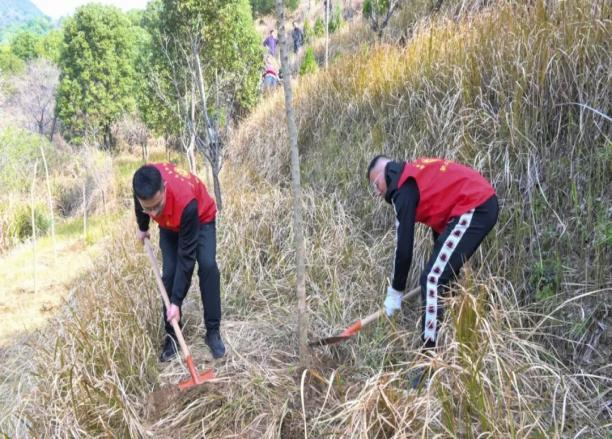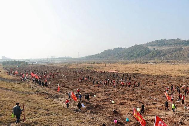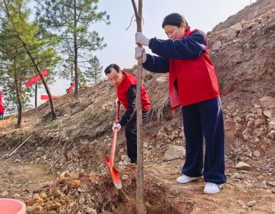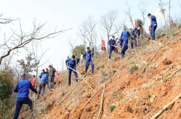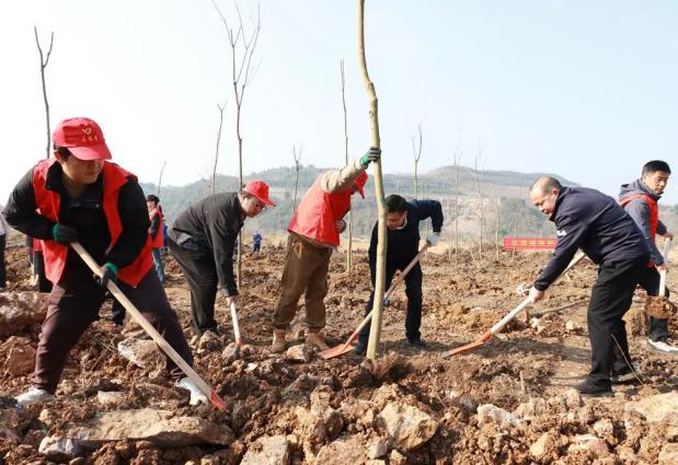大洪山上,草木吐绿。植树现场,市领导与广大干部群众一起,合力栽下一棵棵皂荚树苗。