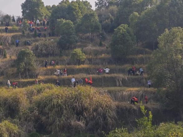 在工作人员的引导下,参与植树活动的人员分成若干小组,有序前往指定植树区域。张家湾社区技术人员全程巡回指导,细致讲解树坑挖掘深度、树苗扶正技巧、培土压实要点等注意事项,确保每一棵树苗都能扎根沃土、茁壮成长。活动现场,大家分工明确、配合默契,呈现出一派热火朝天的劳动景象:有的挥锹铲土挖坑筑基,有的小心翼翼扶苗正位,有的培土压实,每一个环节都认真细致、一丝不苟。