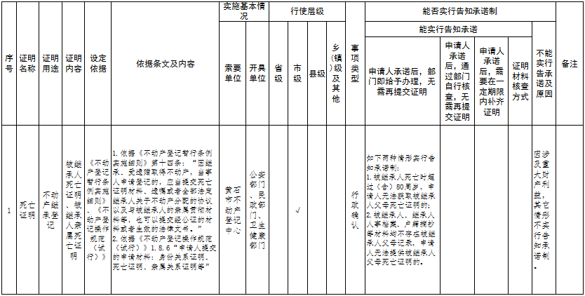 根据《市人民政府办公室关于印发黄石市全面推行证明事项告知承诺制工作实施方案的通知》(黄政发【2021】9号)文件要求,黄石市不动产登记中心根据《黄石市实行告知承诺制证明事项目录清单》中涉及本单位证明事项告知承诺清单公告如下: