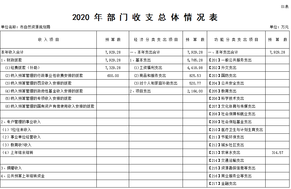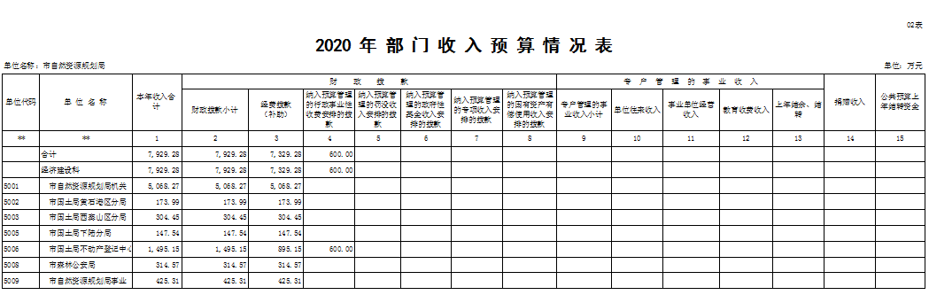 黄石市自然资源和规划局2020年部门预算表 (全局汇总表)