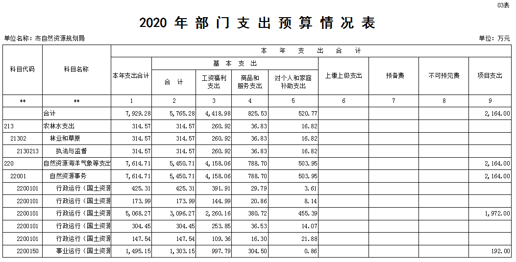 三、2020年部门支出预算情况表(表3)