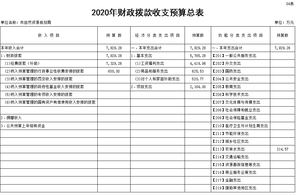 四、2020年财政拨款收支预算总表(表4)