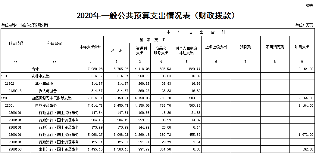 五、2020年财政拨款一般公共预算支出情况表(表5)