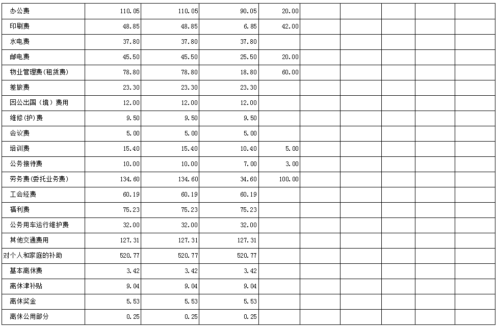 全局机关运行经费825.53万元。具体预算安排如下:办公费110.05万元、印刷费48.85万元、水电费37.8万元,邮电费45.5万元、办公用房物业管理(租赁)费78.8万元、差旅费23.3万元、因公出国(境)费用12万元、维修(维护)费9.5万元、会议费5万元、培训费15.4万元、公务接待费10万元、劳务费134.6万元、工会经费60.19万元、福利费75.23万元、公务用车运行维护费32万元、其他交通费127.31万元等费用。