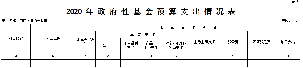 2020年黄石市自然资源和规划局无政府性基金预算支出。