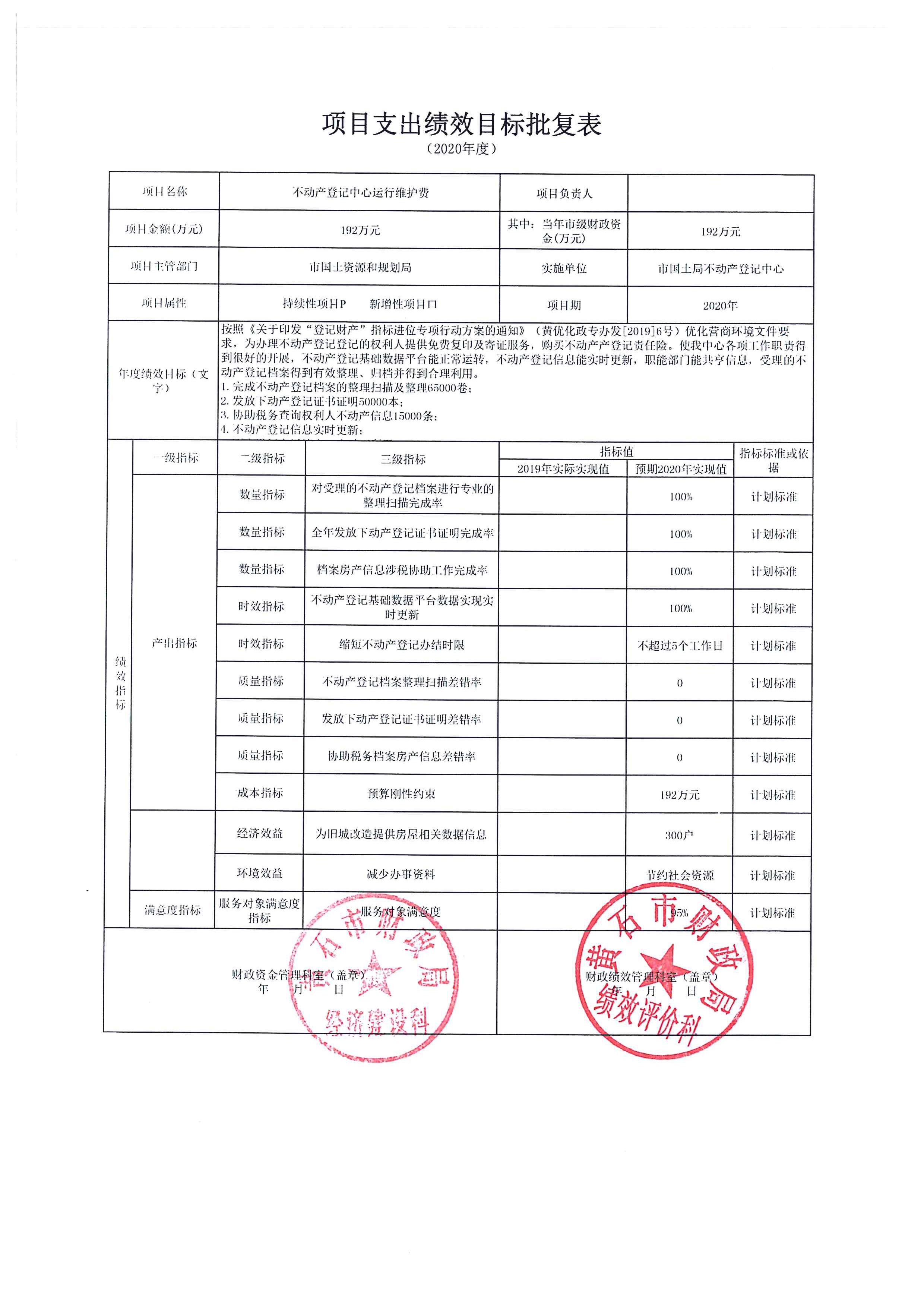 2.不动产登记中心运行维护费项目绩效批复表