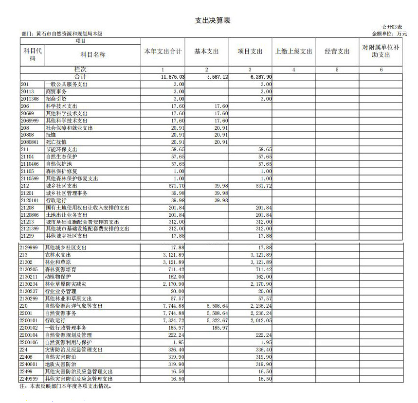 第二部分 黄石市自然资源和城乡建设局(本级)2024年度部门决算表