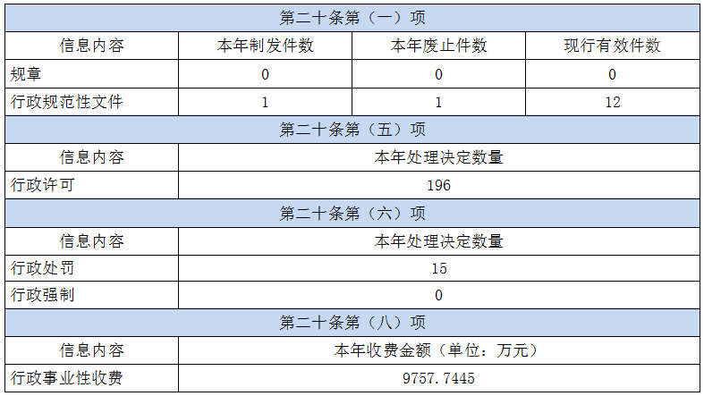 (二)行政执法公开情况。2025年行政许可处理决定数量196件,行政处罚处理决定数量15件。