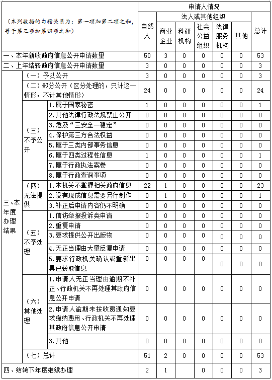 2025年收到政府信息公开申请53件,上年结转3件,共计56件,办理完结53件,结转下年度3件。