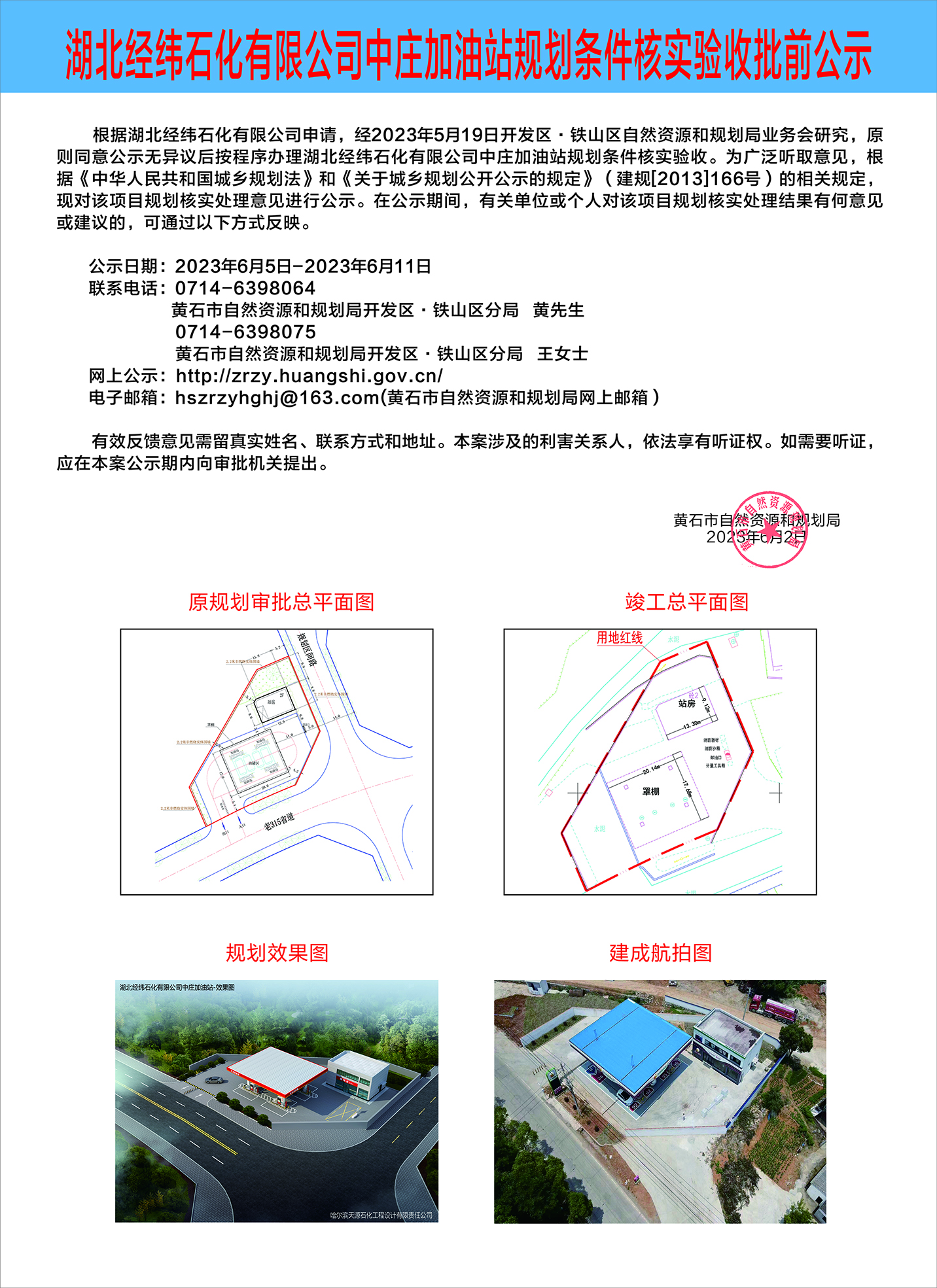 湖北经纬石化有限公司中庄加油站规划条件核实验收批前公示