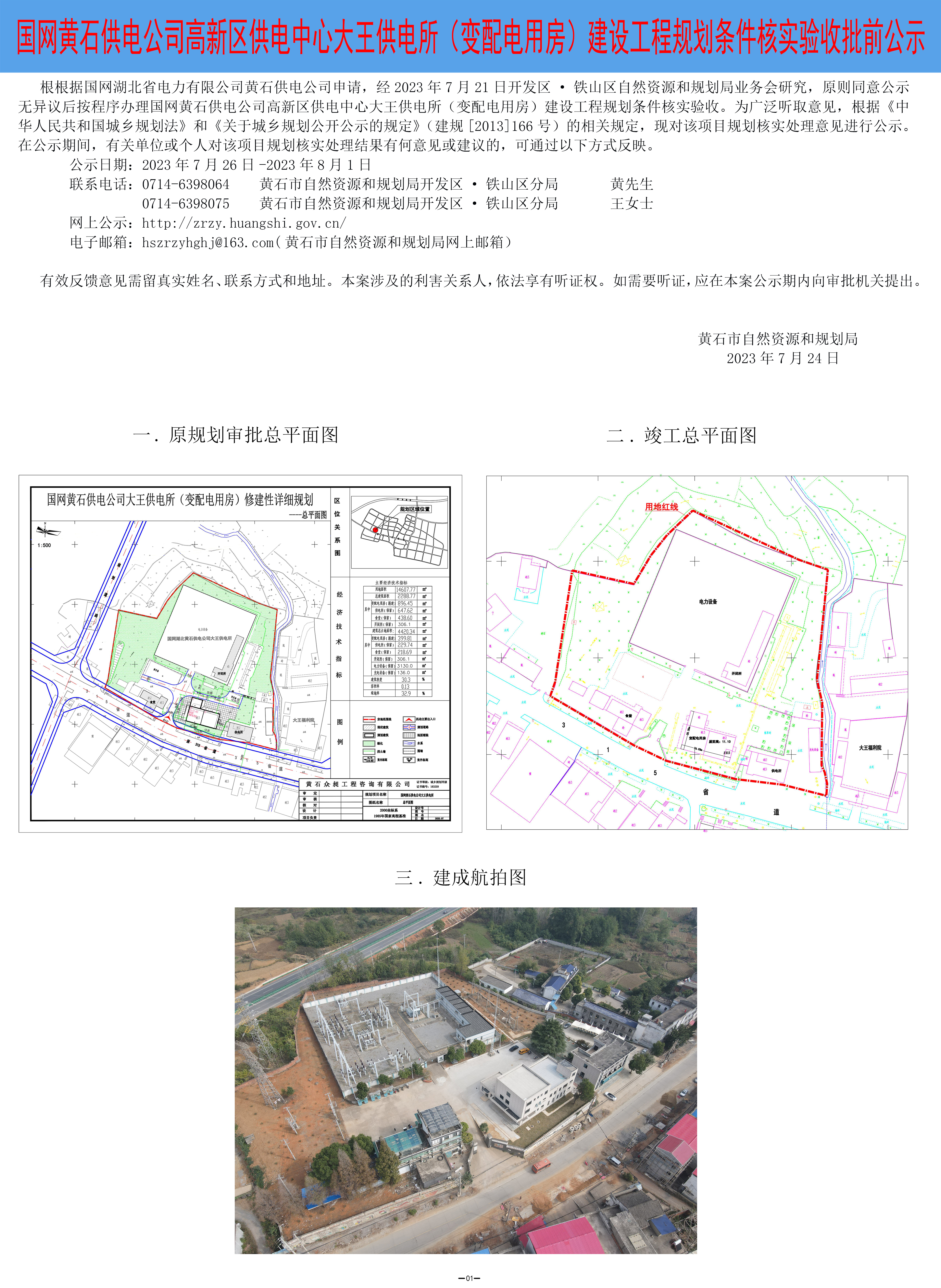 国网黄石供电公司高新区供电中心大王供电所(变配电用房)建设工程规划条件核实验收批前公示