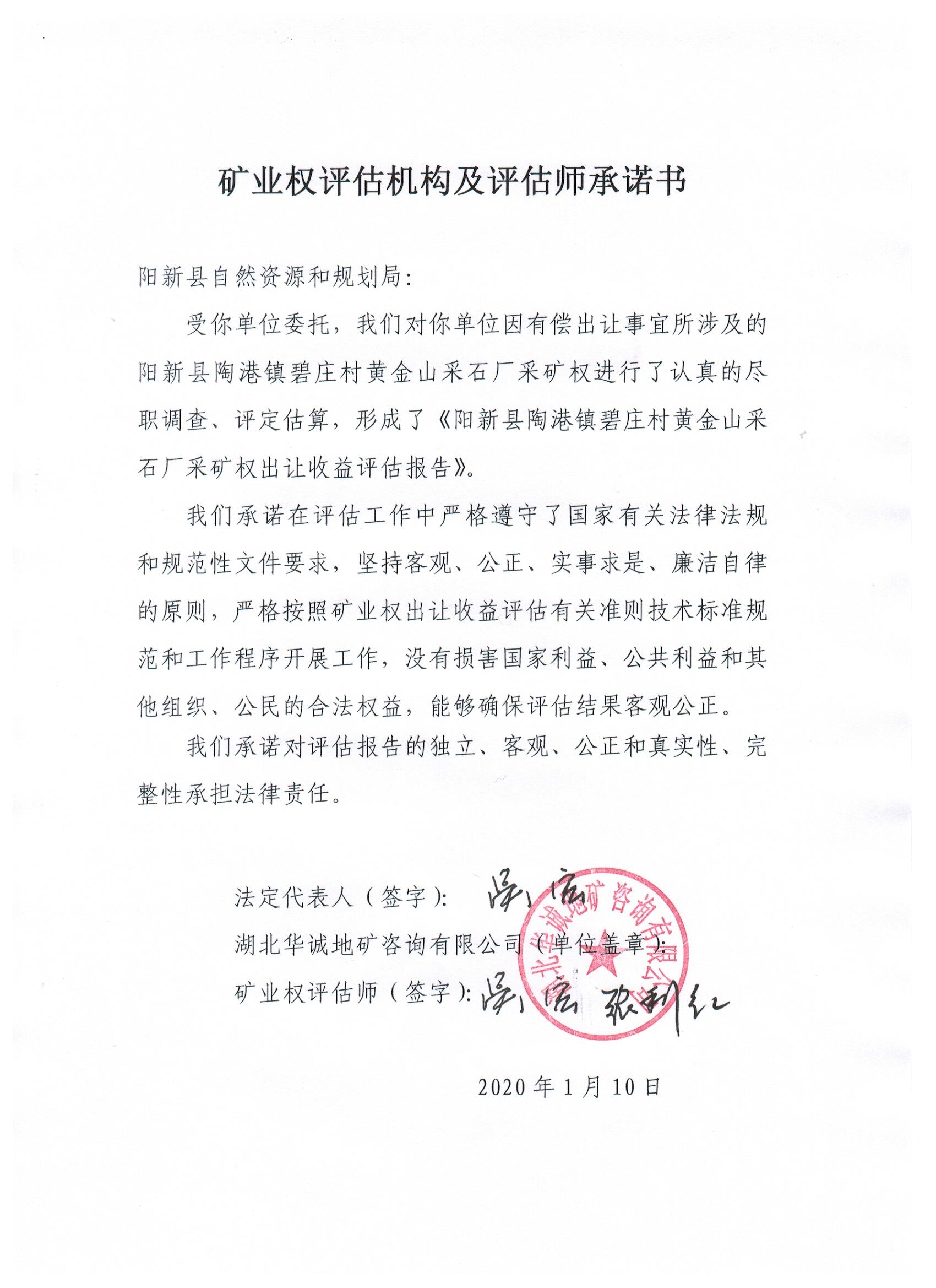评估目的:因阳新县陶港镇碧庄村黄金山采石厂需补缴2015年11月1日至评估基准日消耗储量采矿权出让收益,按照国家现行相关法律法规及湖北省有关规定,需要对该采矿权进行出让收益评估。本次评估即为实现上述目的而提供阳新县陶港镇碧庄村黄金山采石厂补缴采矿权出让收益参考意见。