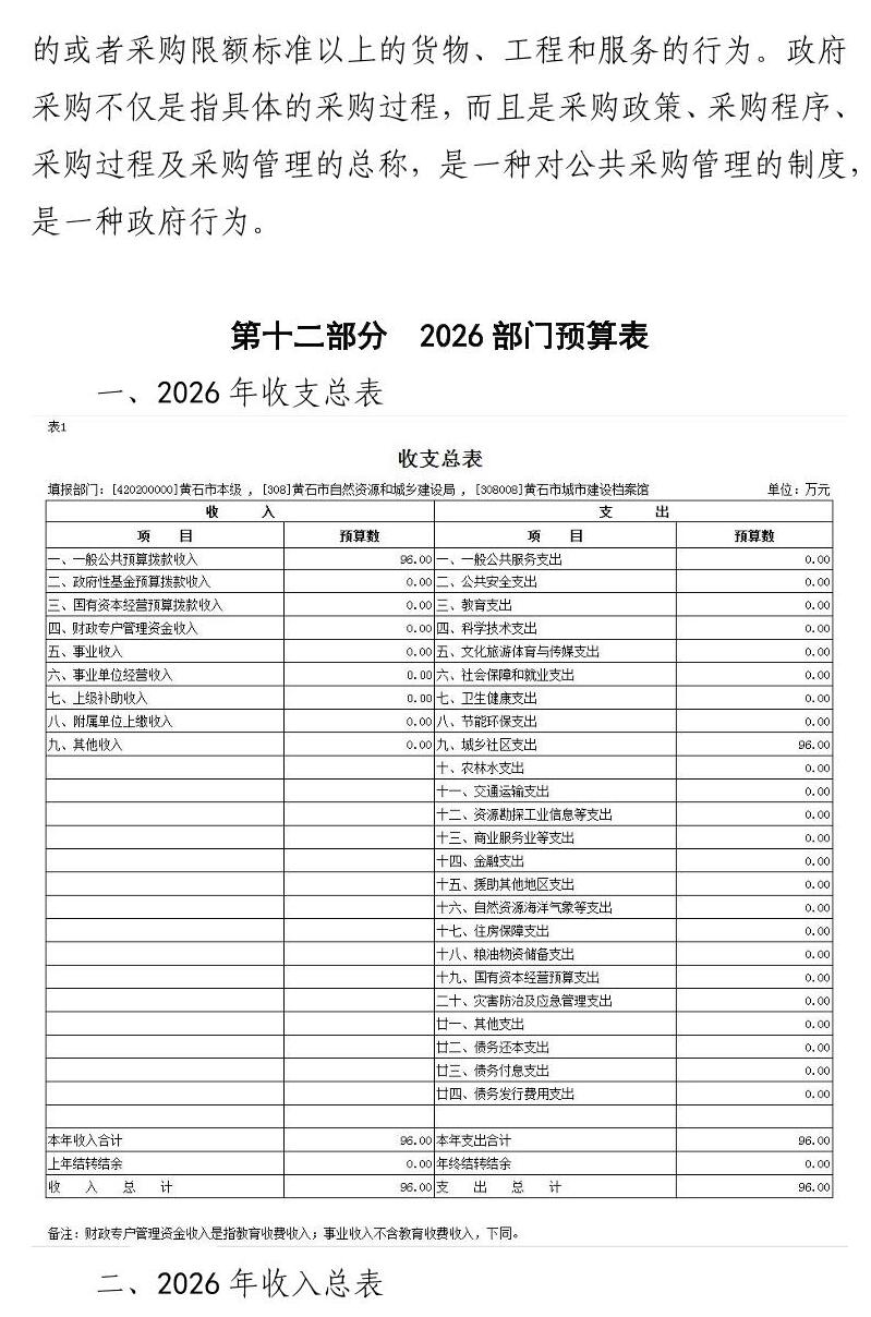 2026年度黄石市城市建设档案馆部门预算公开情况说明