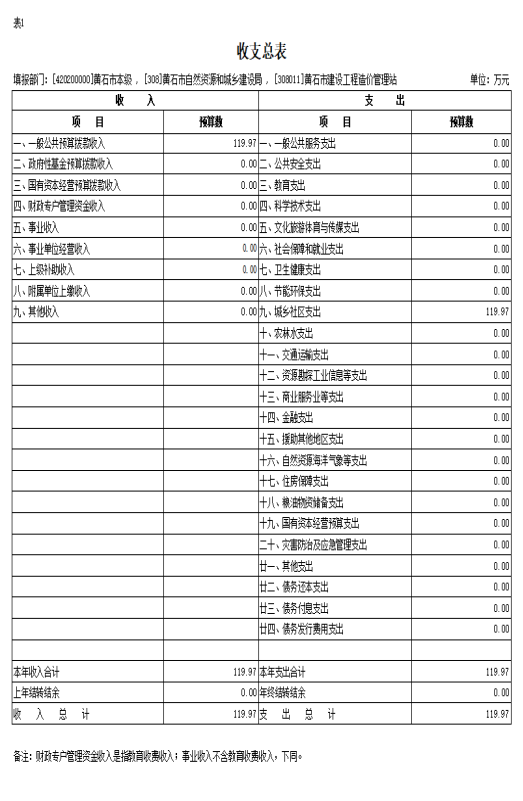 按照综合预算的原则,黄石市建设工程造价管理站所有收入和支出均纳入部门预算管理。
