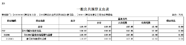 按支出功能分类本年支出预算结构为城乡社区支出:119.97万元,占本年支出 100 %;