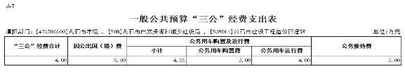 3、公务接待费预算 0万元,比上年预算增加(减少)0万元,增长(下降0%,与上年对比无增减变化,与上年预算持平。