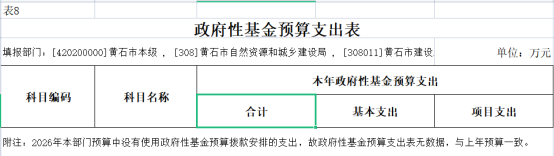 2026年我单位预算中没有使用政府性基金预算拨款安排的支出,故政府性基金预算支出表无数据,与上年一致。2026年我单位预算中,没有使用国有资本经营预算支出情况拨款安排的支出,故国有资本经营预算支出表无数据,与上年一致。2026年我单位预算中没有项目支出预算拨款安排的支出,故项目支出表无数据无此项预算,与上年一致。