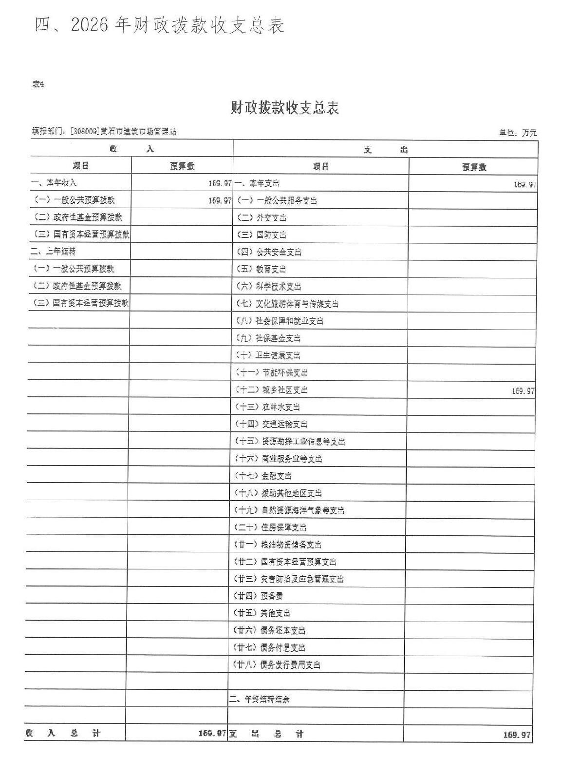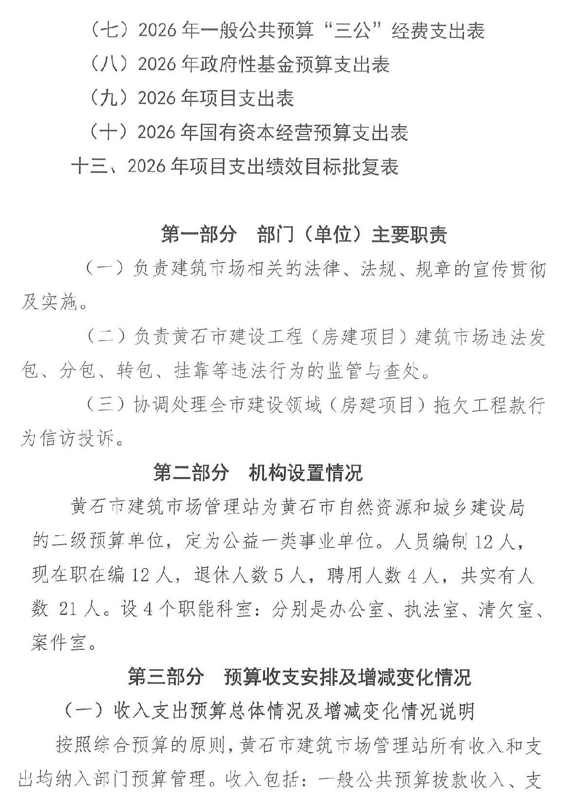 2026年度黄石市建设工程造价管理站部门预算公开情况说明